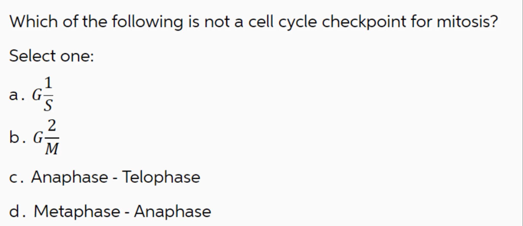 Which of the following is not a cell cycle checkpoint for mitosis?