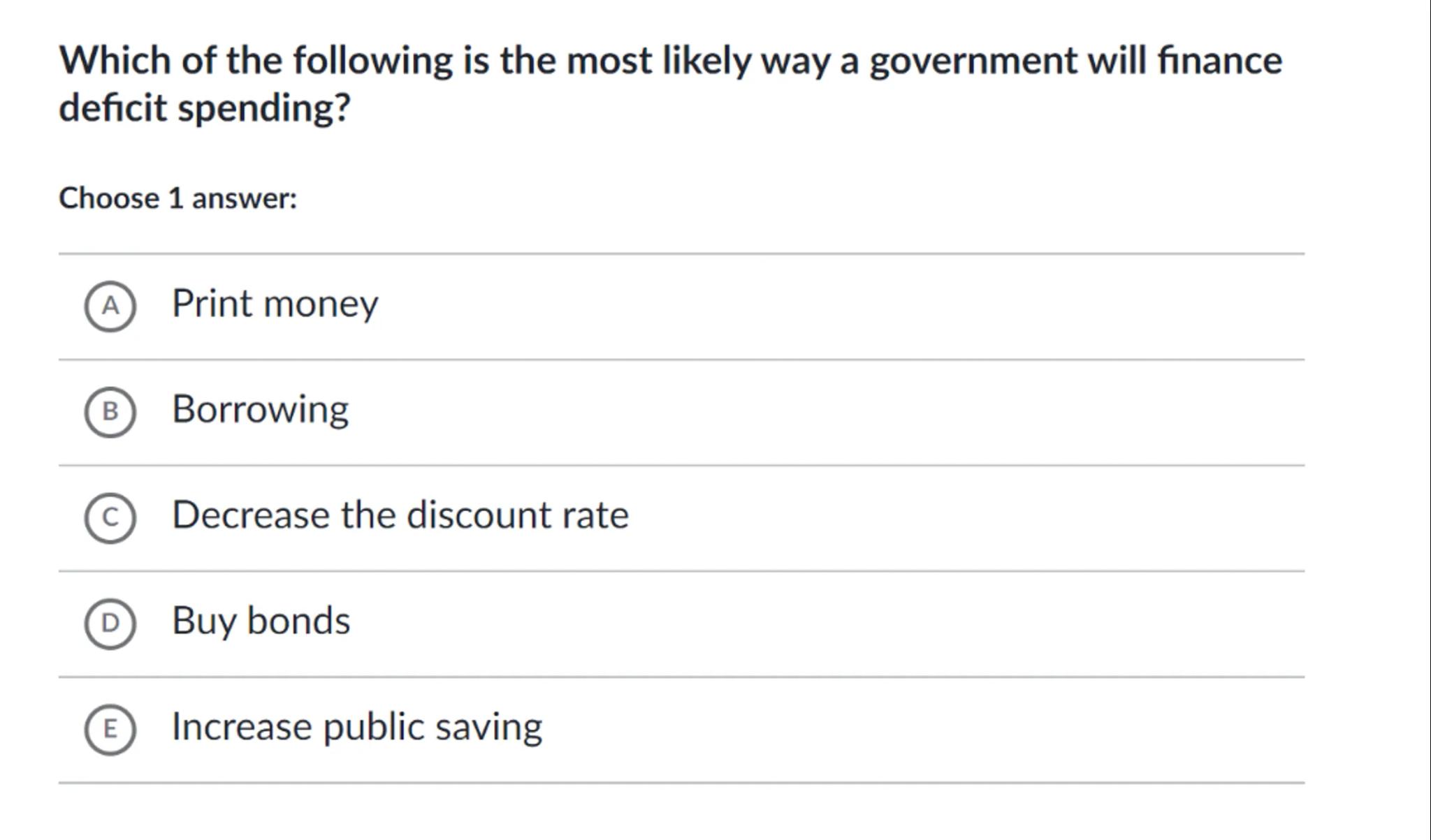 Which of the following is the most likely way a government will finance deficit spending?