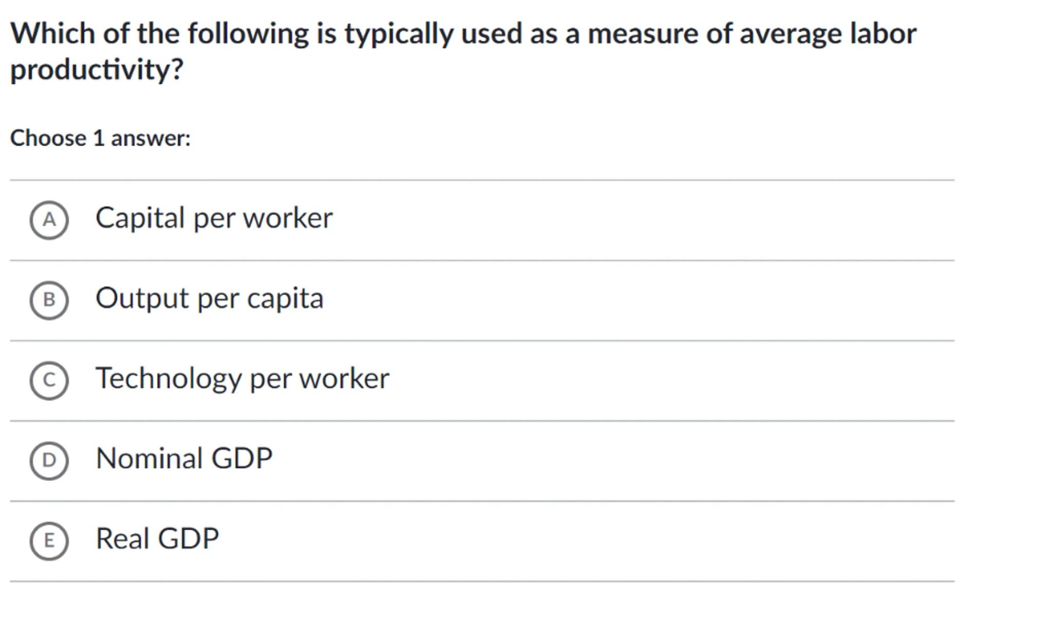 ◊What is the formula for calculating average labor productivity in an economy using output per capita?