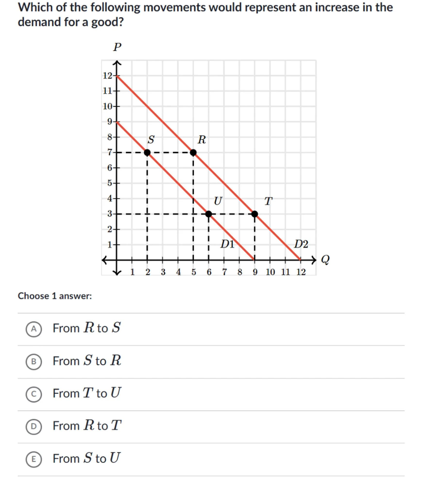 Which of the following movements would represent an increase in the demand for a good?