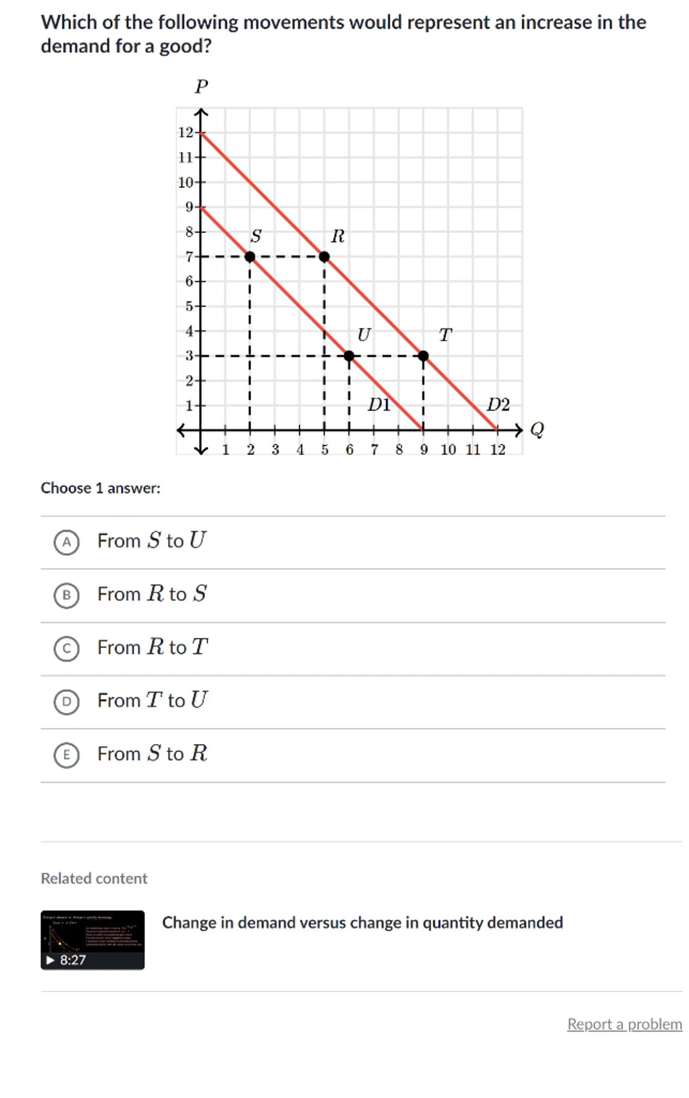 Which of the following movements would represent an increase in the demand for a good?