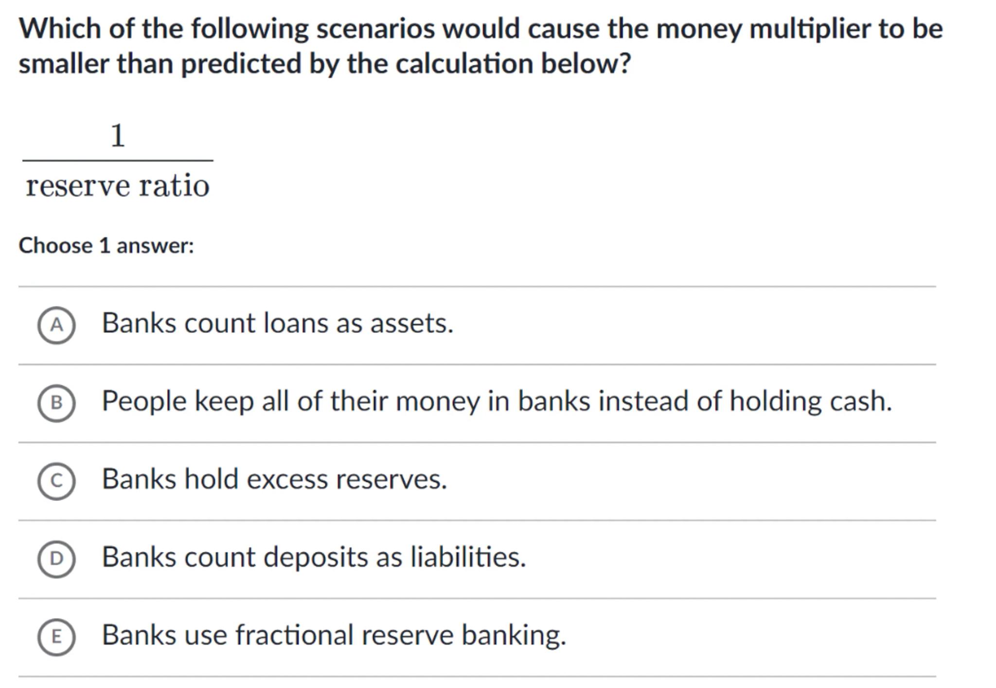 (E) Banks use fractional reserve banking.