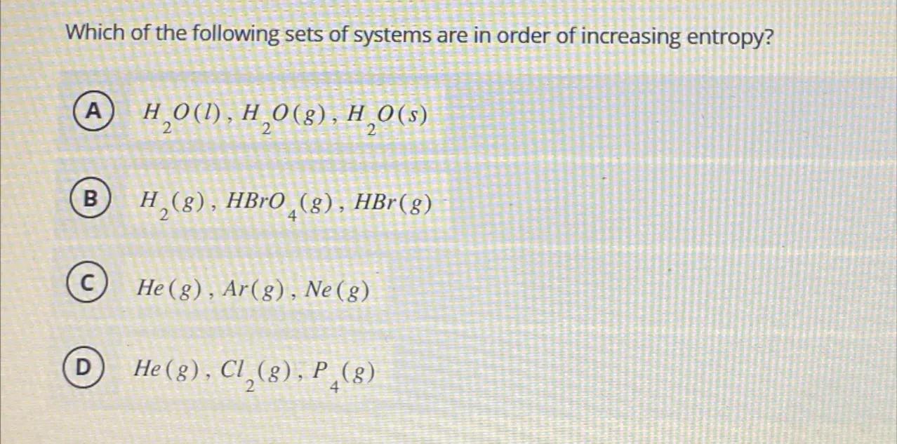 Which of the following sets of systems are in order of increasing entropy?