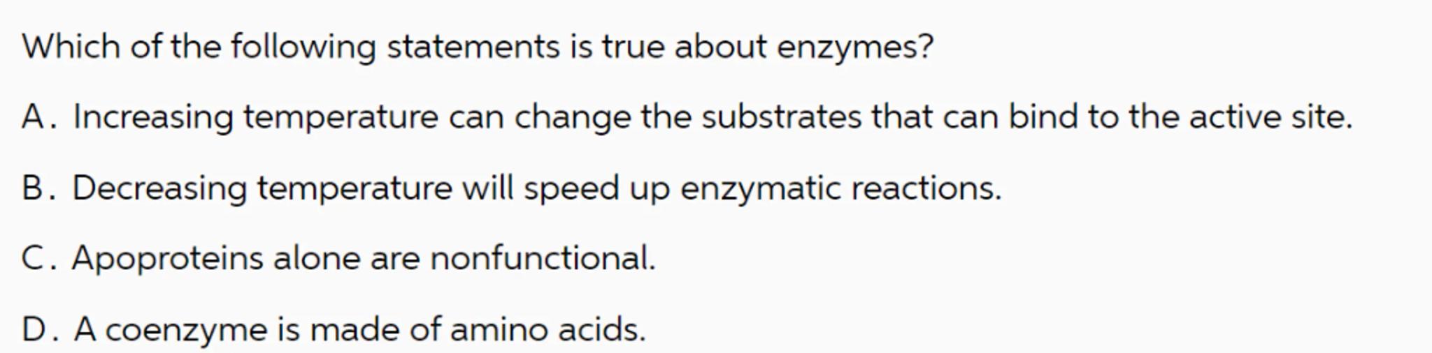 D. A coenzyme is made of amino acids.