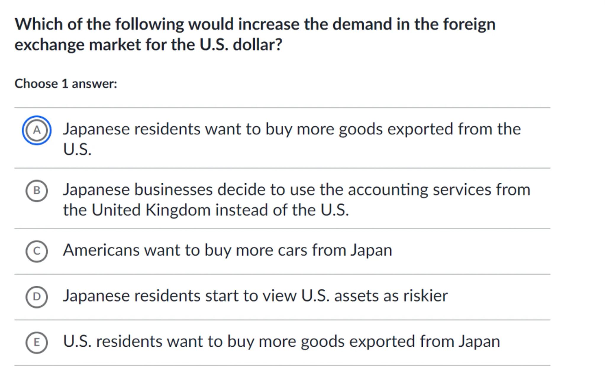 (A) Japanese residents want to buy more goods exported from the U.S.