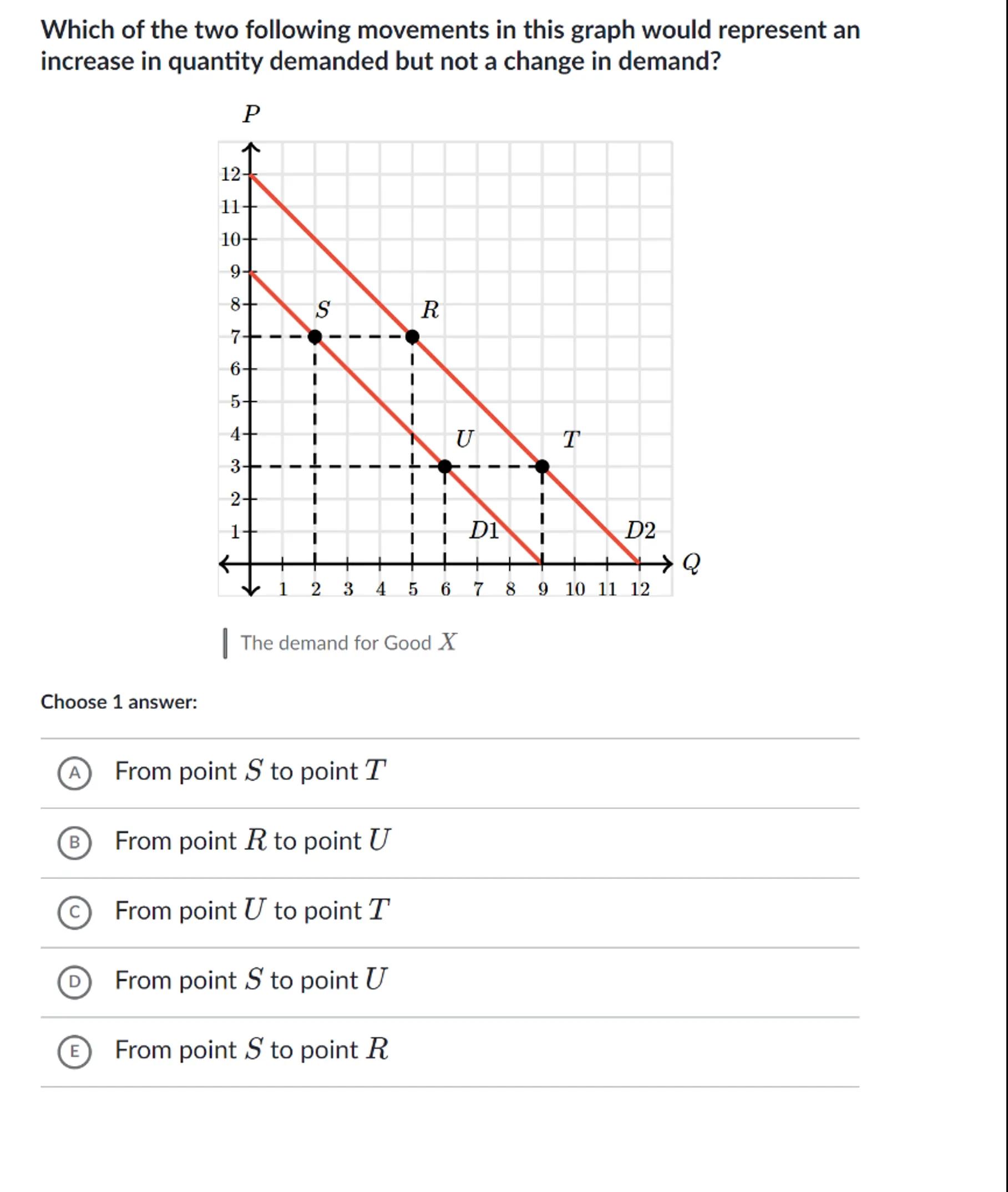 Which of the two following movements in this graph would represent an increase in quantity demanded but not a change in demand?