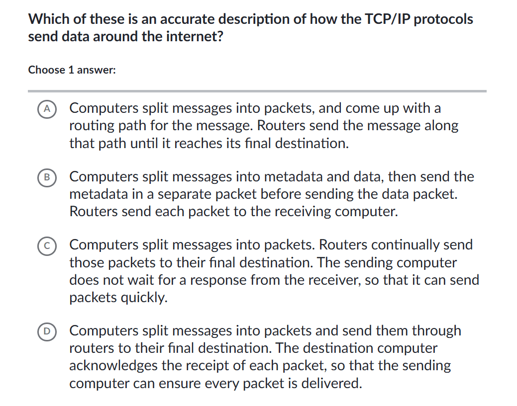Computers split messages into packets, and come up with a