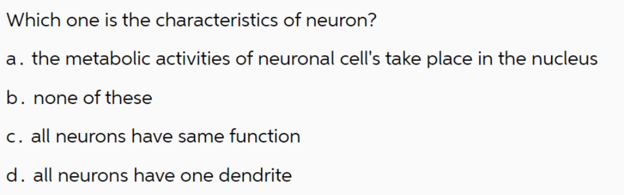 a. the metabolic activities of neuronal cell's take place in the nucleus