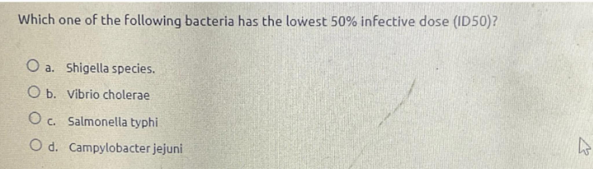 Which one of the following bacteria has the lowest  infective dose (ID50)?