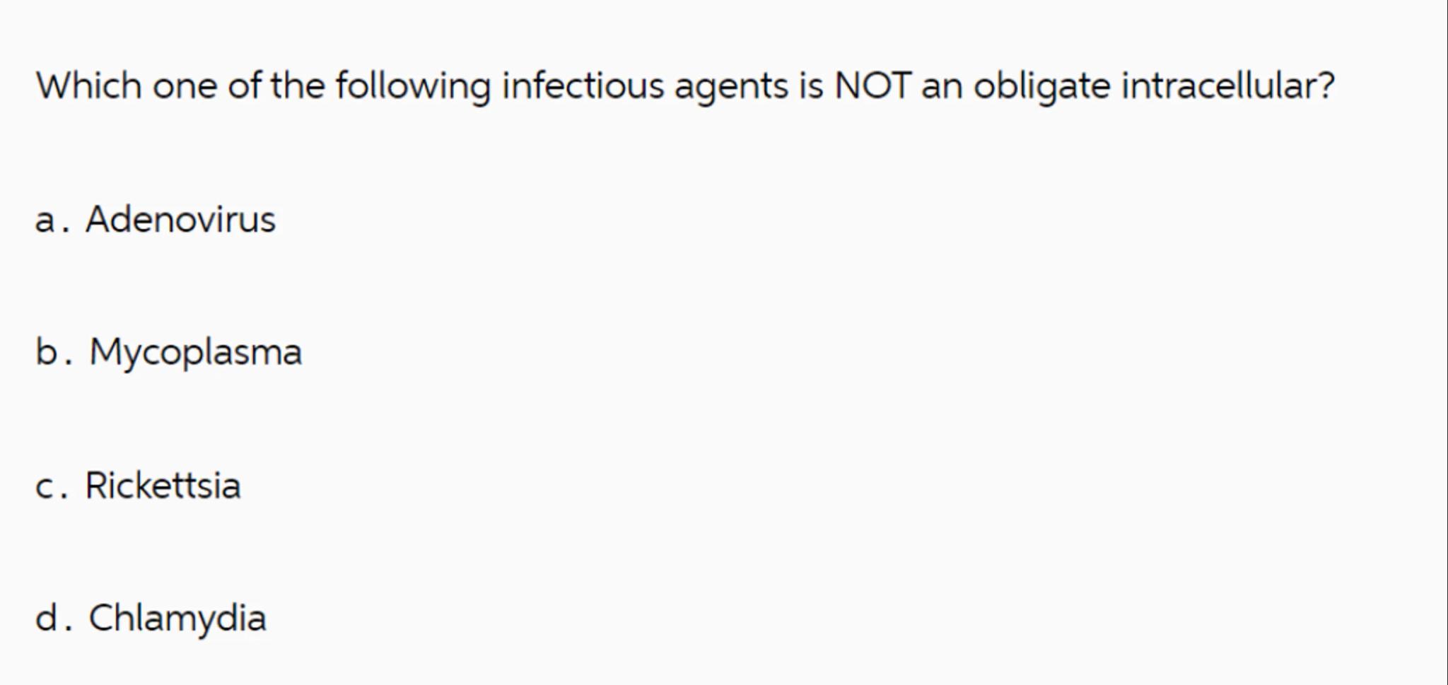 Which one of the following infectious agents is NOT an obligate intracellular?