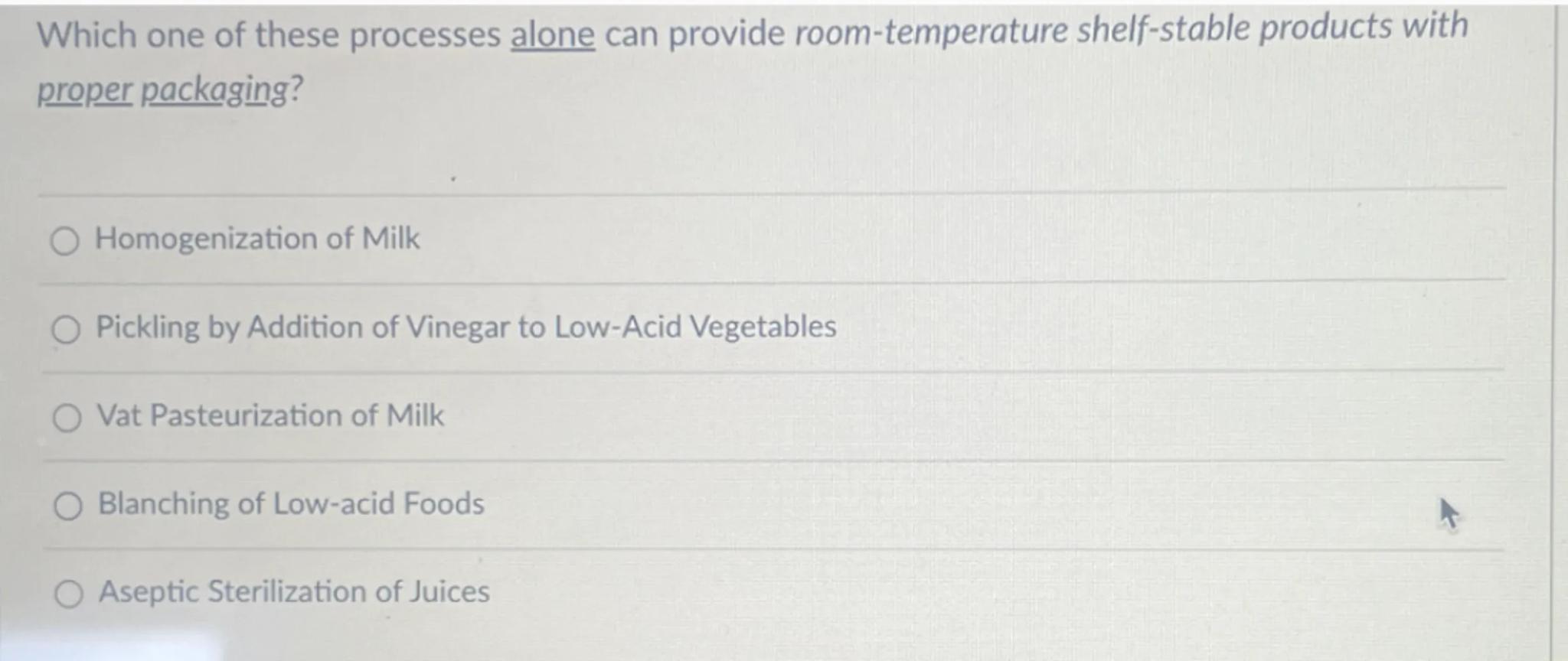 Which one of these processes alone can provide room-temperature shelf-stable products with proper packaging?
