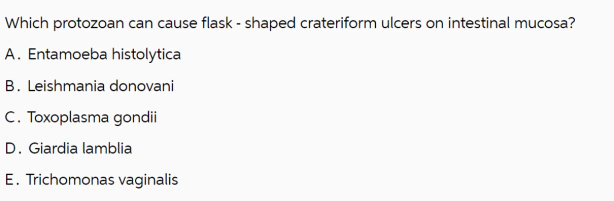 Which protozoan can cause flask - shaped crateriform ulcers on intestinal mucosa?