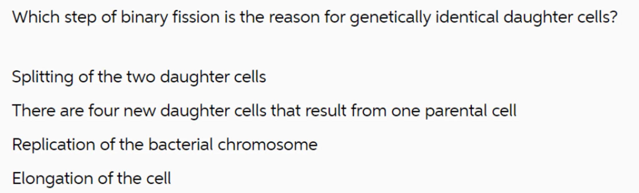 Which step of binary fission is the reason for genetically identical daughter cells?