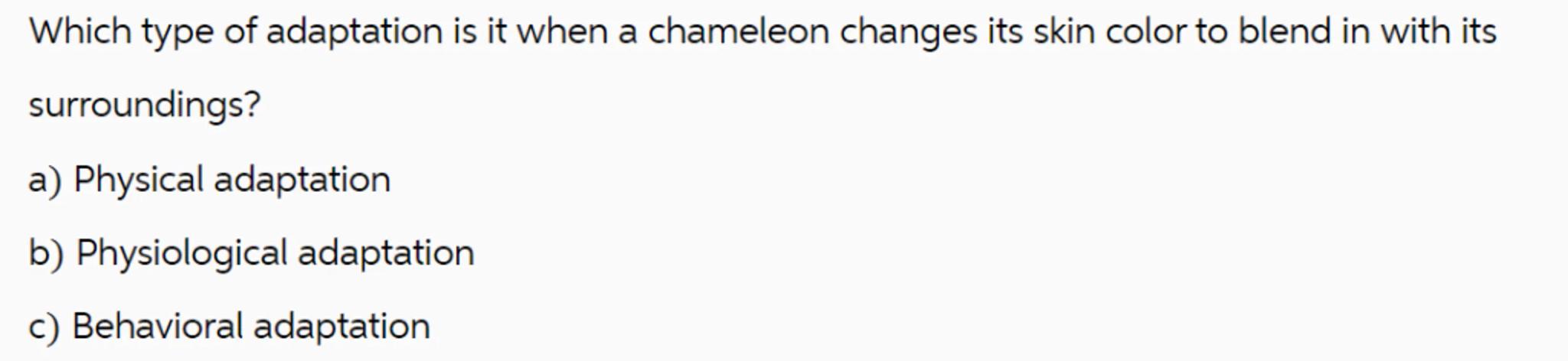 Which type of adaptation is it when a chameleon changes its skin color to blend in with its surroundings?