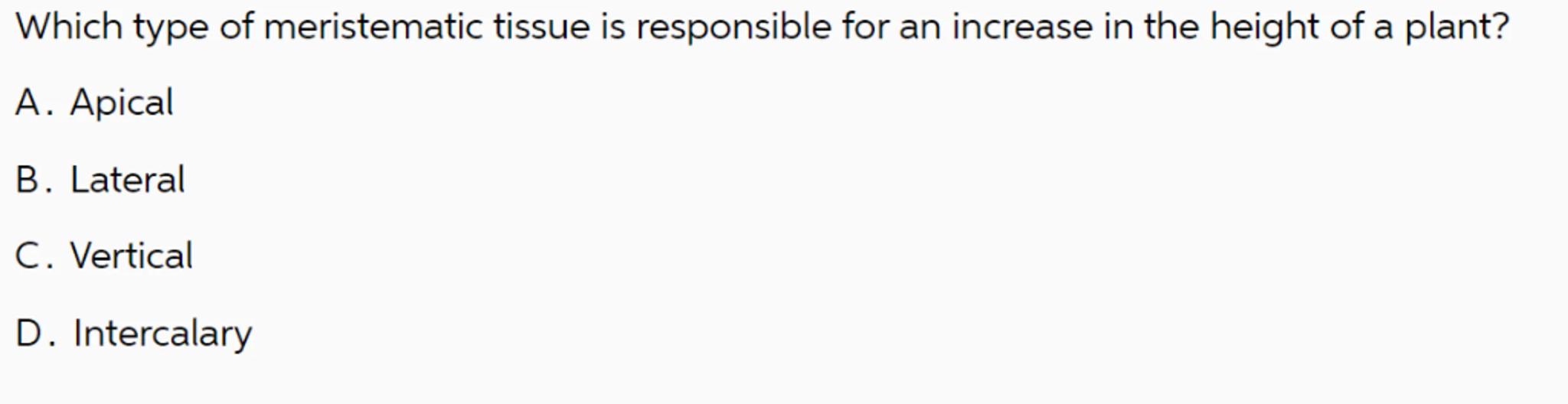 Which type of meristematic tissue is responsible for an increase in the height of a plant?
