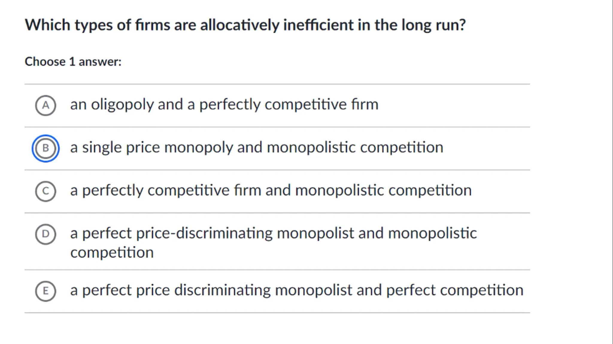 (D) a perfect price-discriminating monopolist and monopolistic competition