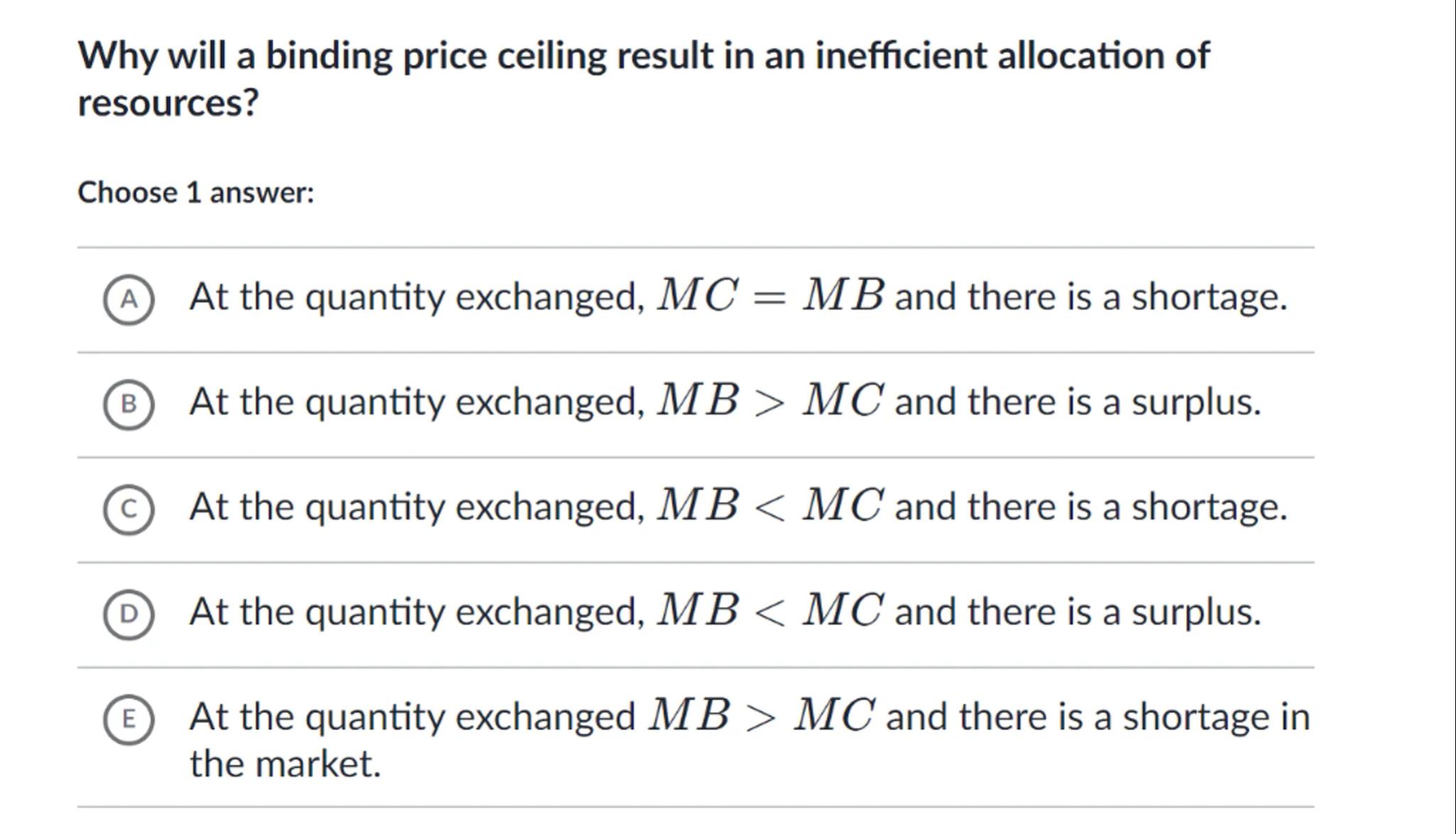 Why will a binding price ceiling result in an inefficient allocation of resources?