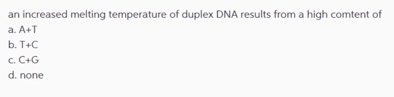 an increased melting temperature of duplex DNA results from a high comtent of