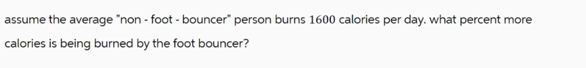 assume the average "non - foot - bouncer" person burns 1600 calories per day. what percent more calories is being burned by the foot bouncer?