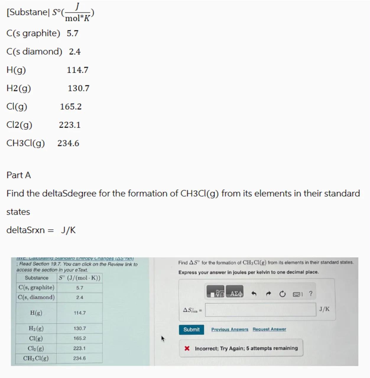 Find the deltaSdegree for the formation of from its elements in their standard states