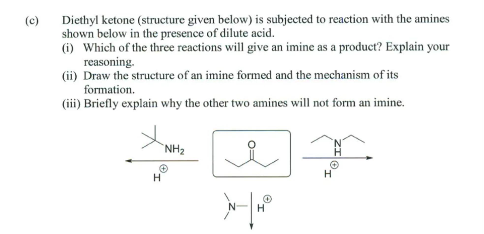 (iii) Briefly explain why the other two amines will not form an imine.