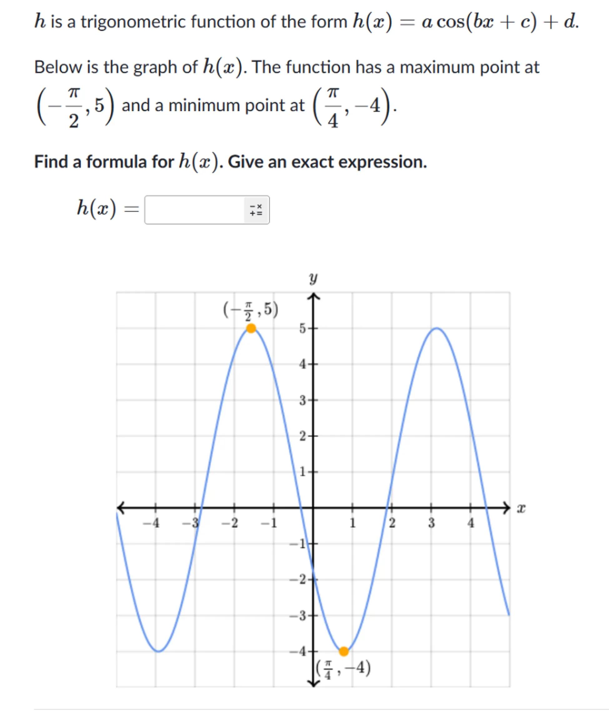 Below is the graph of . The function has a maximum point at and a minimum point at .