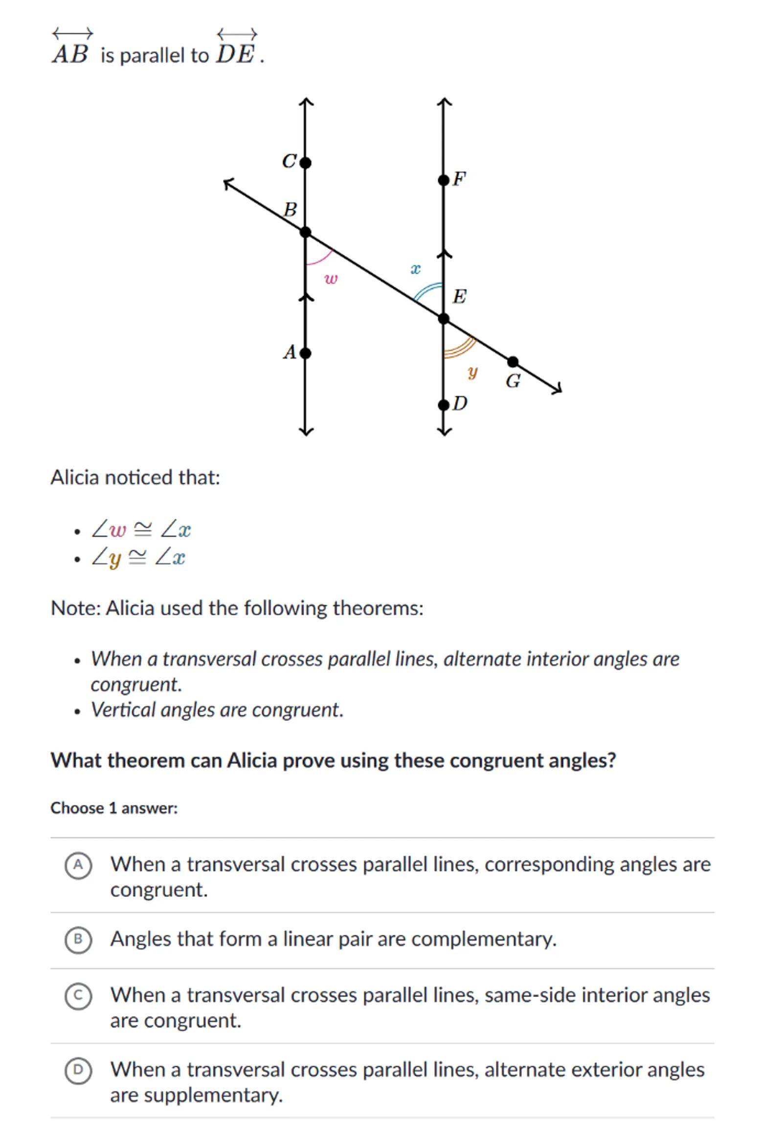 (A) When a transversal crosses parallel lines, corresponding angles are congruent.