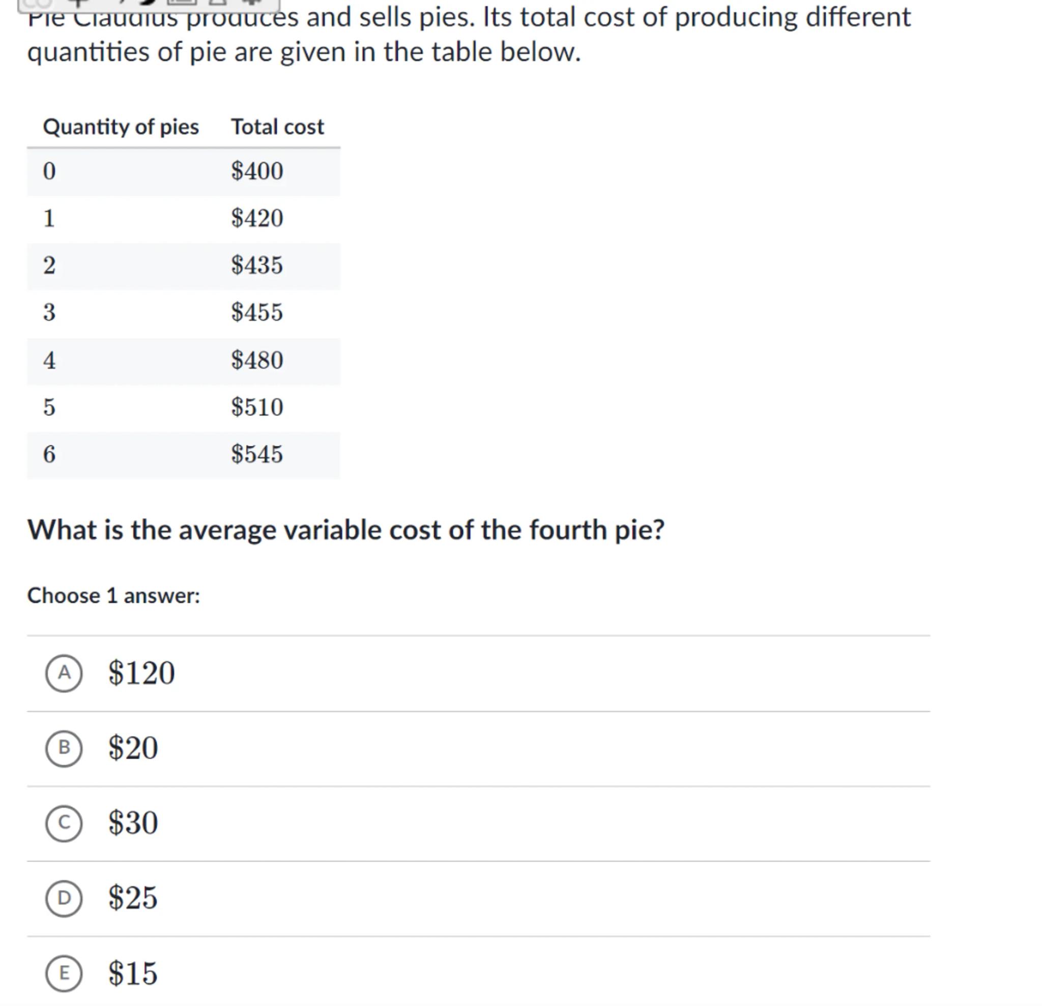 pre Cracuius proauces and sells pies. Its total cost of producing different quantities of pie are given in the table below.
