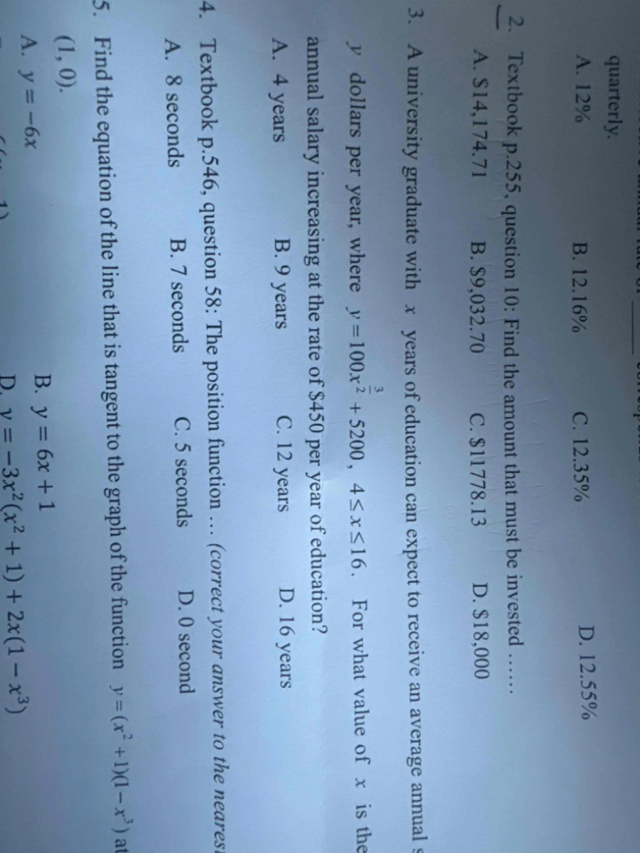 2. Textbook p.255, question 10: Find the amount that must be invested ......