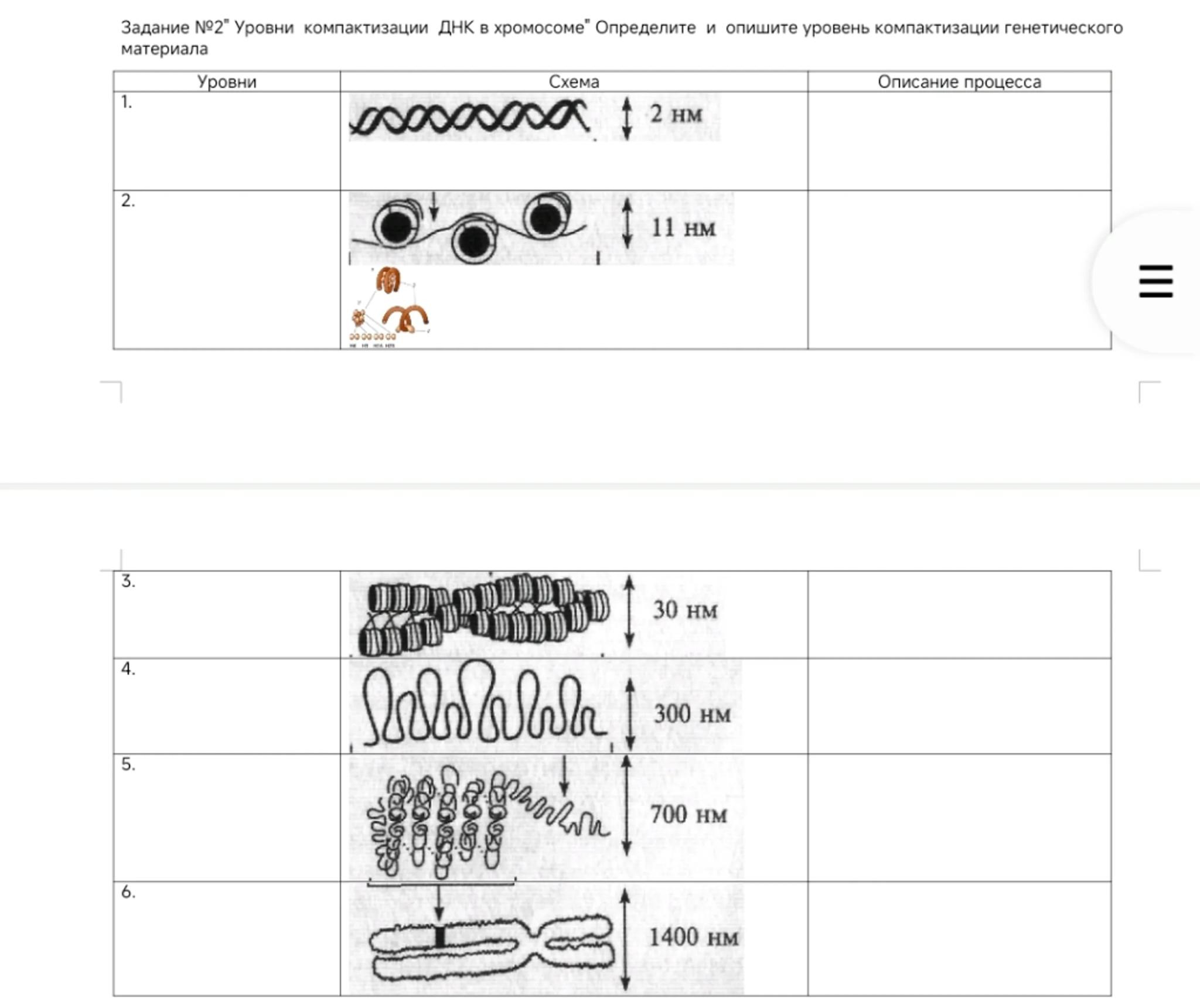 Задание №2" Уровни компактизации ДНК в хромосоме" Определите и опишите уровень компактизации генетического материала