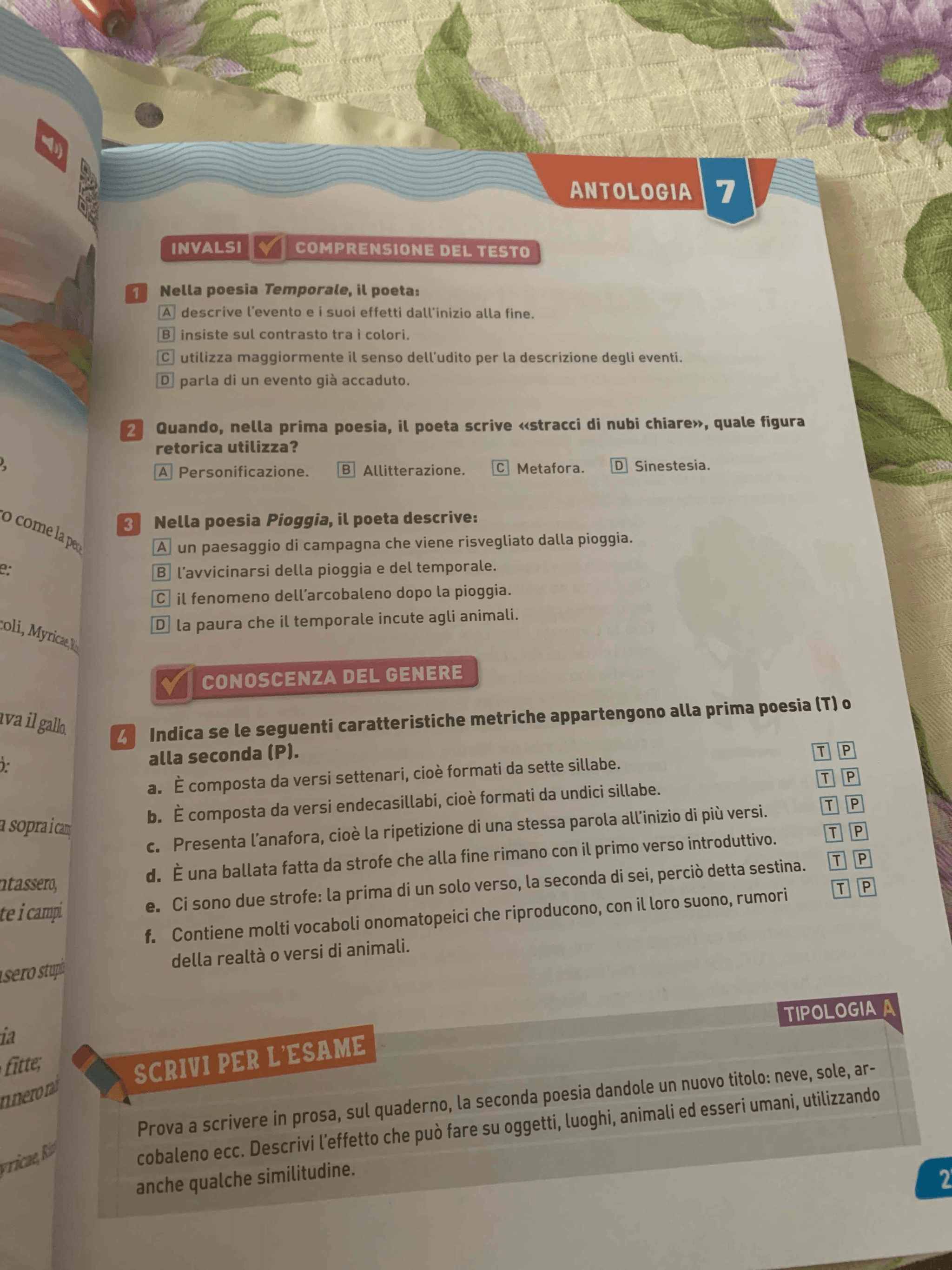 Indica se le seguenti caratteristiche metriche appartengono alla prima poesia (T)